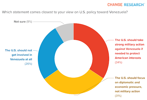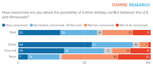 A nationwide survey by Change Research before President Nicolás Maduro was captured showed that Americans were already concerned about increased conflict with Venezuela. The poll, conducted December 5-10, 2025, interviewed 1,520 registered voters as part of Change Research’s internal Compass Poll series, which informs the Change Research Data Portal.
